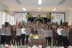 *PASURUAN* – Dalam rangka memperingati Hari Bhakti Adhyaksa yang ke-64, Kapolres Pasuruan AKBP Teddy Chandra, S.I.K., M.Si diwakili Wakapolres Pasuruan Kompol Hari Aziz, S.H. menunjukkan solidaritas dan keharmonisan antara institusi penegak hukum dengan mengirimkan tumpeng dan kue ulang tahun ke Kejaksaan Negeri (Kejari) Kabupaten Pasuruan.