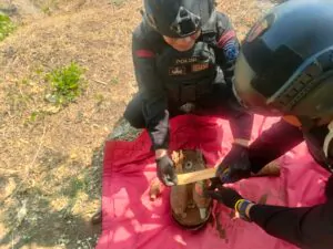 PASURUAN, kabar99news.com, – Anggota Polsek Puspo yang dipimpin oleh Kapolsek Puspo AKP Mastuki, S.H. melaksanakan pengamanan Disposal (Pemusnahan) Mortir dan Ranjau Darat yang dilaksanakan oleh Tim KBR Subden Jibom Detasemen Gegana Sat Brimob Polda Jatim yang dipimpin oleh Bripka Gunanto selaku Ps. Panit 3 Subden Jibom Detasemen Gegana Sat Brimob Polda Jatim, yang digelar di Area bekas tambang pasir RBC, Desa Cengkrong, Kecamatan Pasrepan, Kabupaten Pasuruan, Jum’at (09/08/2024).