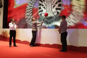 Usai memberikan sambutan, Kapolda Jatim Irjen Pol Imam Sugianto secara langsung melakukan pemukulan gong sebagai tanda kegiatan Rakernis bertajuk “Kesiapan Fungsi Intelkam Polda Jatim dan Jajaran pada Pelaksanaan Pilkada Serentak Tahun 2024 di Wilayah Jawa Timur” resmi dibuka.(Adf)