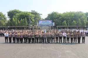 Peserta apel seluruh PJU Polres Pasuruan, Kapolsek jajaran, serta beberapa instansi terkait, seperti Dinas Perhubungan, Satpol PP, dan Polisi Militer.