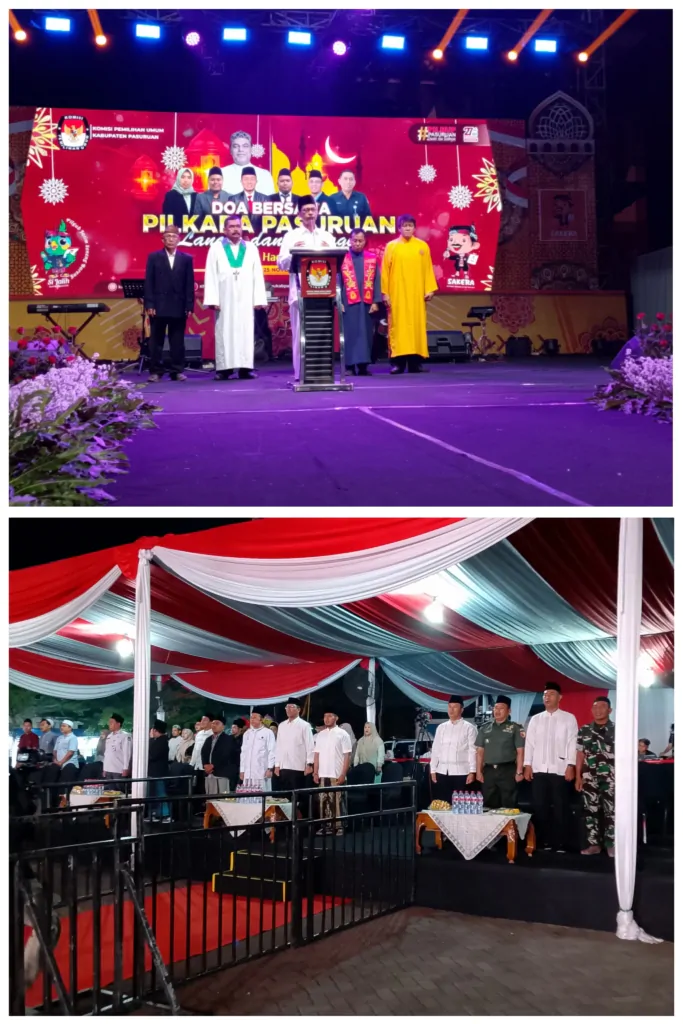 Acara dimulai dengan menyanyikan lagu Indonesia Raya, dilanjut dengan lagu jingle KPU. Dan ditutup dengan Doa. Menariknya Do’a dipimpin oleh berbagai Pemuka Agama di Kabupaten Pasuruan diantaranya Islam, Kristen, Budha dan Hindu.