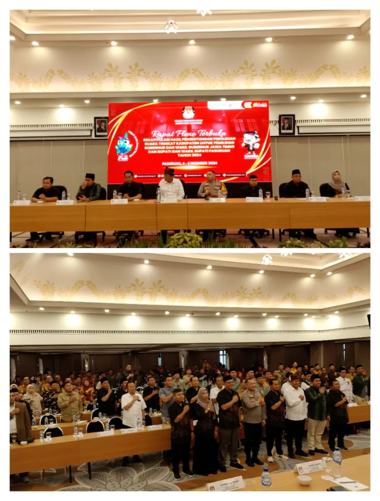 PASURUAN,Kabar99news.com,–Komisi Pemilihan Umum (KPU) Kabupaten Pasuruan gelar rapat pleno terbuka,hasil rekapitulasi Pilgub dan Pilbub pilkada serentak tahun 2024, Rabu (04/12/2024).