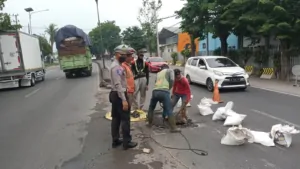 “Namun, lubang di depan Pos Lantas Taman Dayu memiliki kerusakan kompleks akibat ambrolnya plat beton saluran air. Pihak PU menyatakan perbaikan di lokasi tersebut akan membutuhkan waktu lebih lama,” tambah AKP Deni.